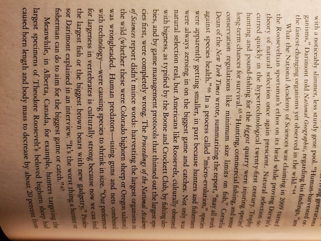 January 2009, Professor Chris Darimount (google him) stated in an issue of “Proceedings of the National Academy of Sciences ” ; “Modern day hunters, by aiming for the ‘mightiest’ and the ‘lordliest’ big game had left surviving generations with a slimmer, less sturdy gene pool.”
