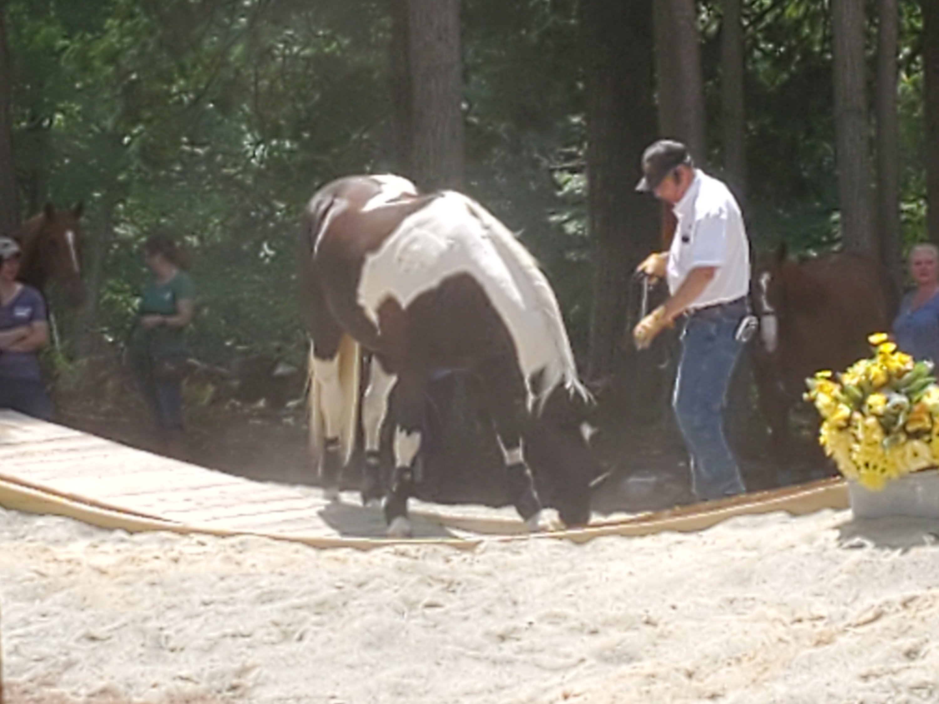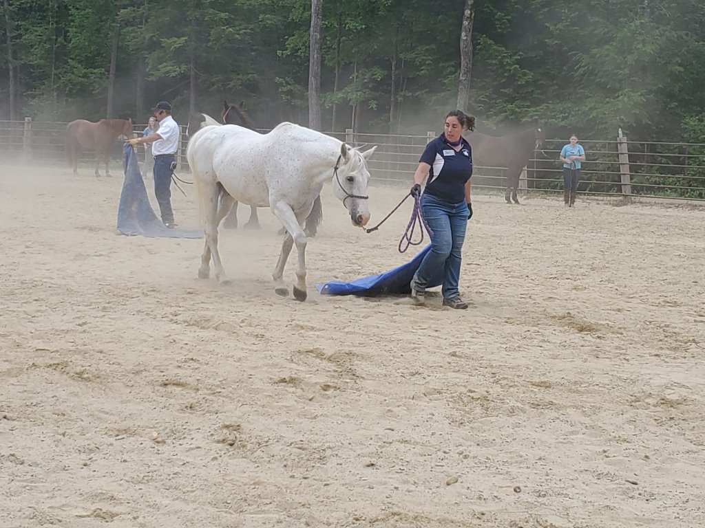 The first step in each clinic began with ground work , in the ring and on the course. Mark believes in a meeting of minds, not dominance. The goal of the human is to be the Alpha mare. To win your horses respect.