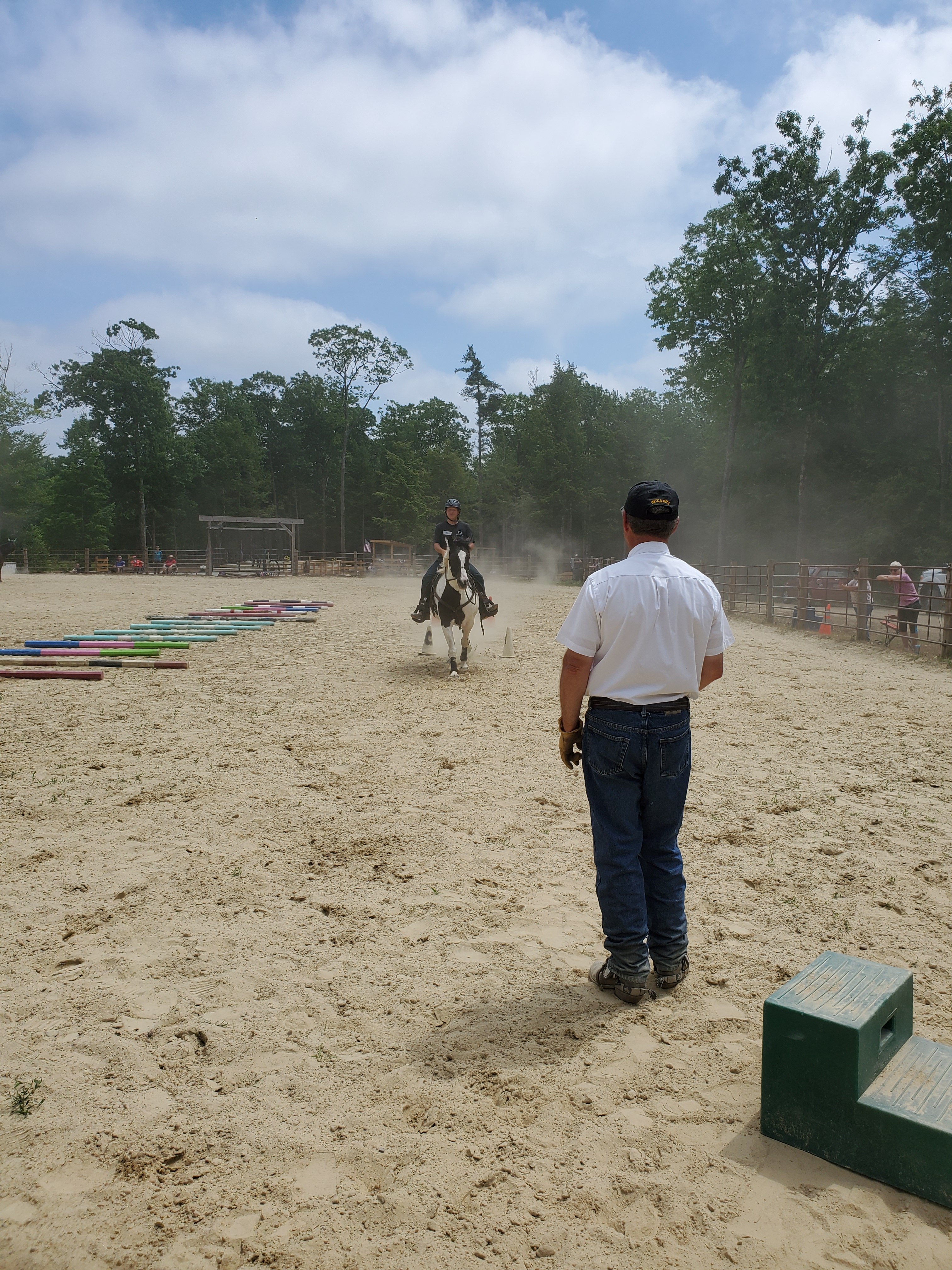The second half of each day was mounted. First in the ring. Cones for focus. Ground poles for foot placement. Then on to the course