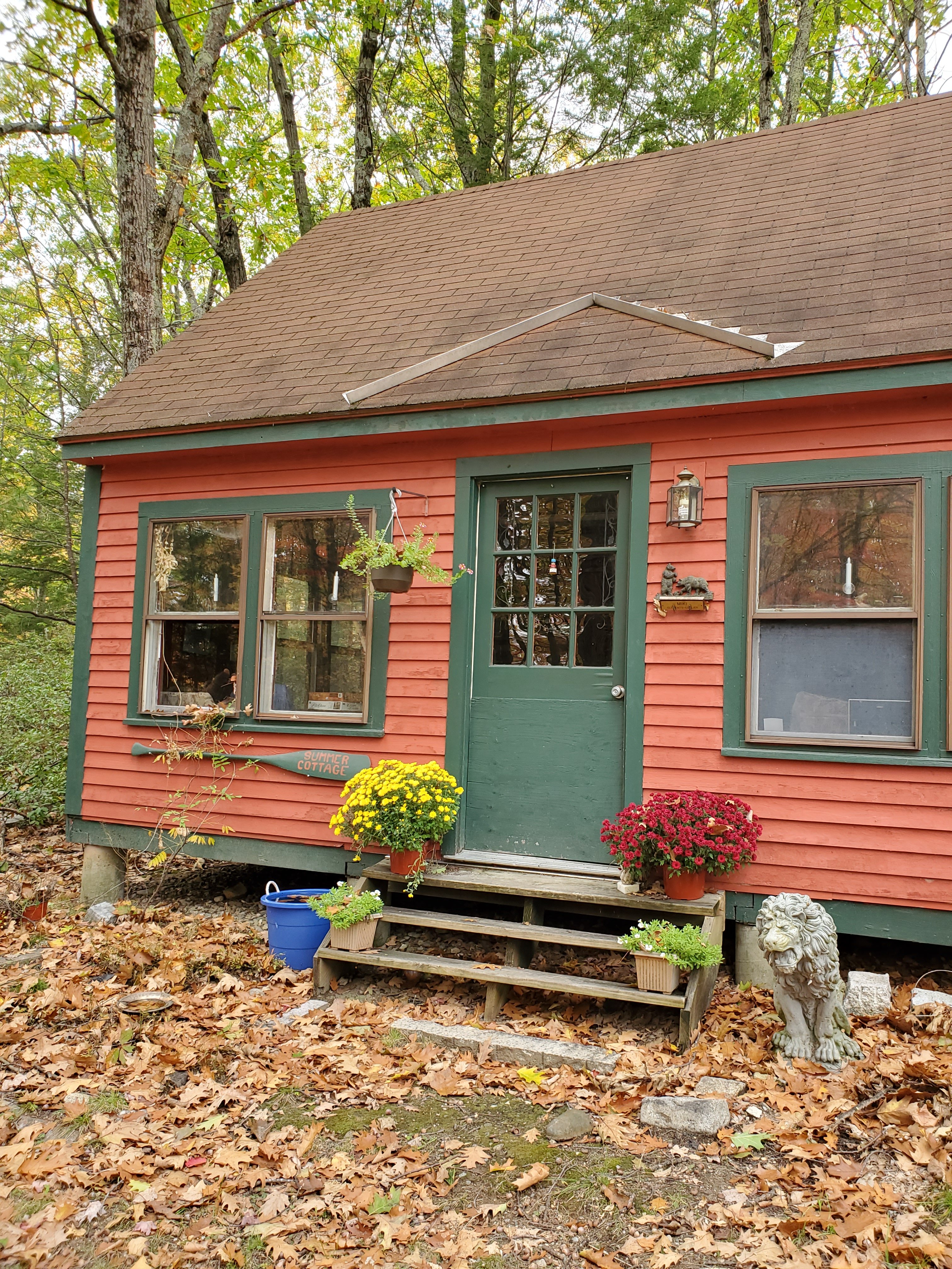 The tubs, note blue one by cottage, gather what little moisture has fallen and, as a side benefit catches an occasional destructive rodent.