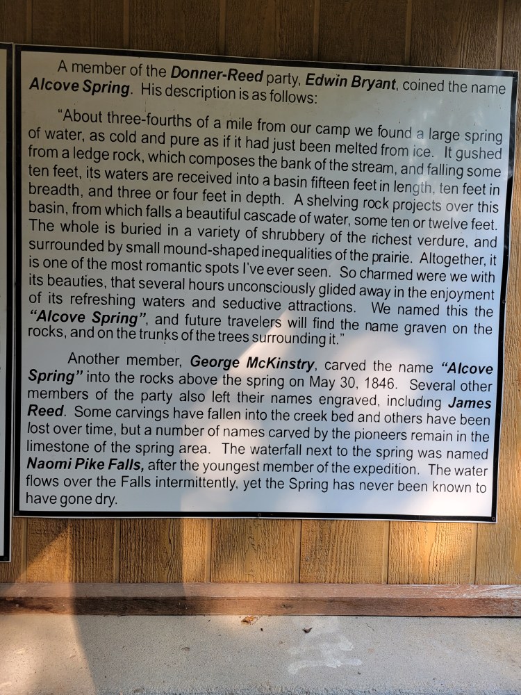 The area around the spring is a well used park with trails and picnic areas. Picnic areas are set up right where the wagons used to stop. I wonder if there are any ghosts?