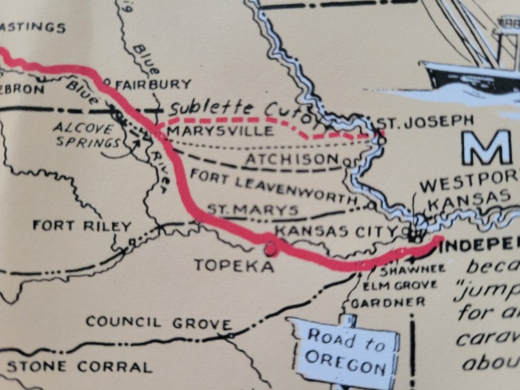 Because the first leg of this trip was researching for my book, we stopped at a few spots along the way. Most impressive were the Weaver Hotel, where we stayed. An incredible restoration done by locals. The town of Marysville, a pony express station and a beautiful little town, and Alcove Springs, an amazing step back in time, even with drought conditions.